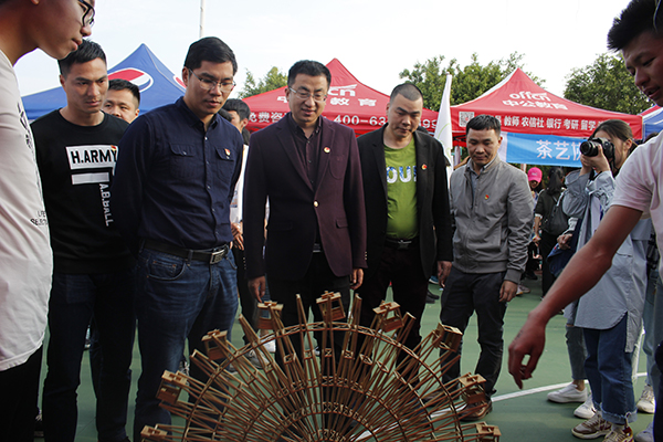4月17日下午,我校于灯光篮球场隆重举办以“青春校园,梦想飞扬”为主题的第十一届社团文化节作品展示活动。我校团委书记陈晓峰,校团委全体老师,电信学院团总书记杨日奎,学生会、学生社团联合会、各二级学院社团部以及各学生社团全体会员均参加了此次活动。
