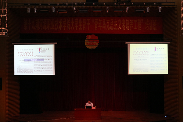 4月23、24日晚,我校于学术报告厅开展第十九期大学生骨干“青马工程”培训班第十课《新时代大学生文化自信与文化自觉》专题讲座。此次讲座由我校团委书记陈晓峰担任主讲,培训班全体学员参与并聆听了此次课程。