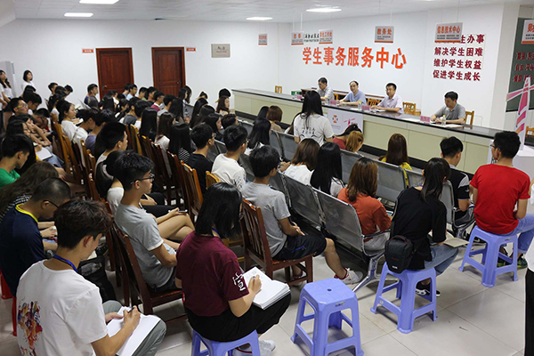 为深入学习贯彻习近平新时代中国特色社会主义思想和党的十九大精神,全面实施灯塔工程——广东青年大学生思想引领行动;按照学校《关于校领导开展“深调研”工作方案》的要求,5月15日起,于每周二在我校学生事务服务中心召开学生社团学习贯彻习近平总书记重要讲话精神暨大学生社团工作调研会议。我校副校长赖小景,校团委书记陈晓峰、副书记黄志鹏,机电工程学院团总支书记杨成,电信学院团总支书记杨日奎,工商学院团总支书记朱伟文,艺术与设计学院团总支张超,学生会主席团成员代表,校社联主席团成员,各学生社团代表以及各学院社团部代表均出席了此次活动。