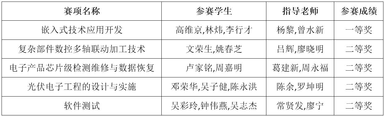截止6月3日,我校代表广东省参加2018年全国职业院校技能大赛的5个赛项全部完结,共获得1个一等奖,4个二等奖,为广东省和学校挣得了荣誉。其中,“嵌入式技术应用开发”赛项获一等奖,为本次国赛我校取得的最好成绩。