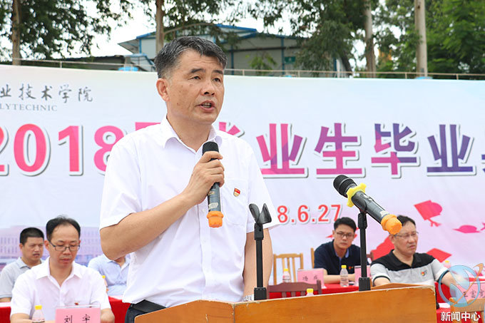 在致辞中,陈德清满怀深情与学子们回忆青春过往,感召新时代召唤:三年前编织大学梦想的奋斗故事,记忆犹新;三年河职院求知成长的奋斗青春,历历在目;母校八十八年风雨兼程、砥砺前行的奋斗史诗,豪迈激昂;祖国“两个一百年”奋斗目标,催人奋进。