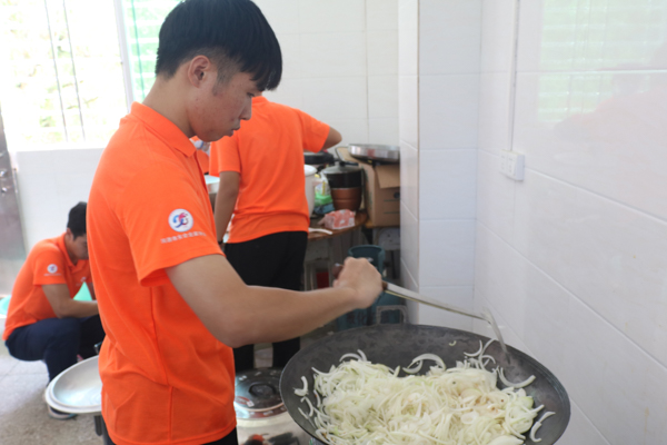 天刚亮,当大家还在睡梦中时,主厨们早已起床为大家准备好早餐。而当队员们享用完早餐后,后勤队成员们便赶往菜市场买菜。商讨菜色、尝试新菜品、与菜农聊天已成为日常,而一切都是为了在有限的经费里给队员们买到最好的食材,做出最好的饭菜,保证他们能够元气满满地开展工作。