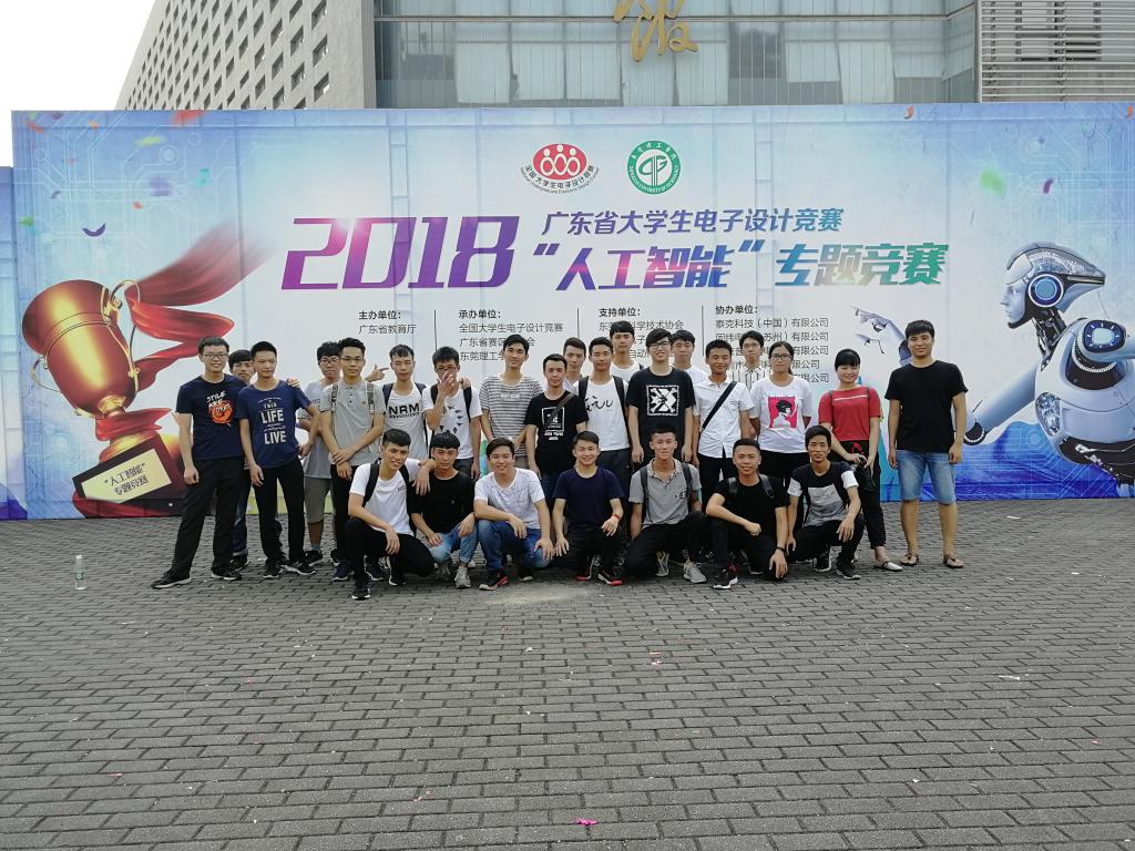 2018年广东省大学生电子设计竞赛——“人工智能”专题竞赛于8月21日至8月22日在东莞理工学院举行,来自华南理工、深职院等省内65所本科、高职的746支队伍同台竞技,我校遴选24位同学组成8支队伍参赛,发挥出色,共获得一等奖3项、二等奖2项、三等奖2项,获奖成绩位居所有参赛院校前列。