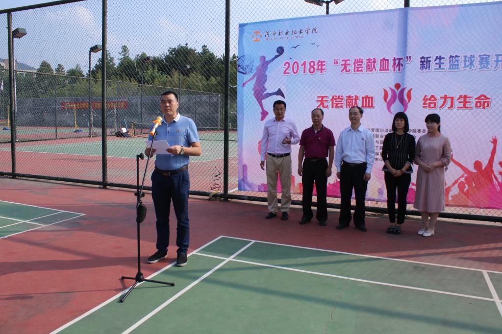 赖小景副校长宣布星空在线(中国)唯一官方网站2018年“无偿献血杯”新生篮球赛开幕