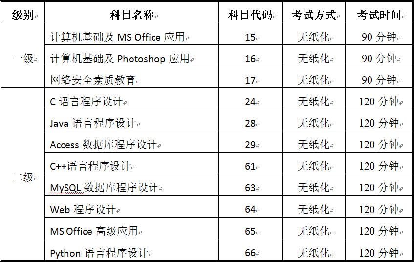 2020年3月全国计算机等级考试开考科目(星空在线(中国)唯一官方网站考点)