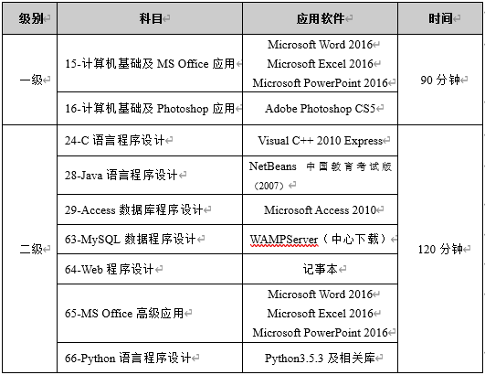 NCRE各科目考试软件列表