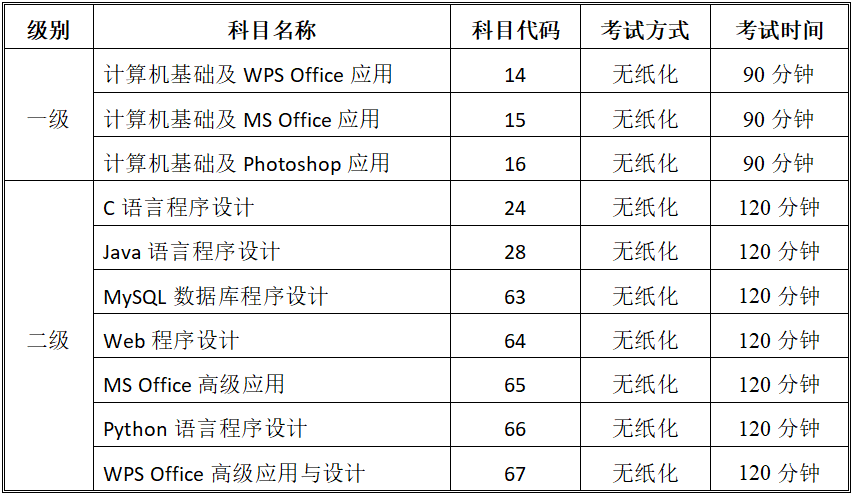 2025年9月全国计算机等级考试开考科目(星空在线(中国)唯一官方网站考点)