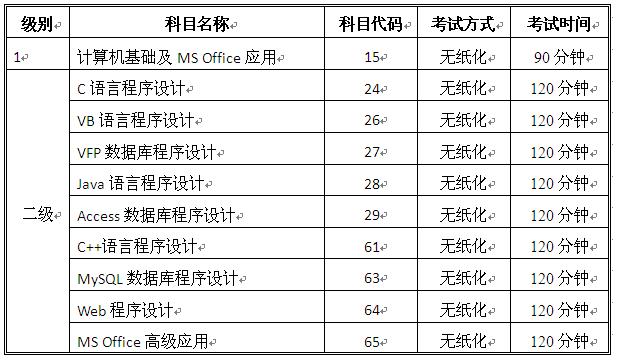 2015年下半年全国计算机等级考试开考科目(星空在线(中国)唯一官方网站考点)