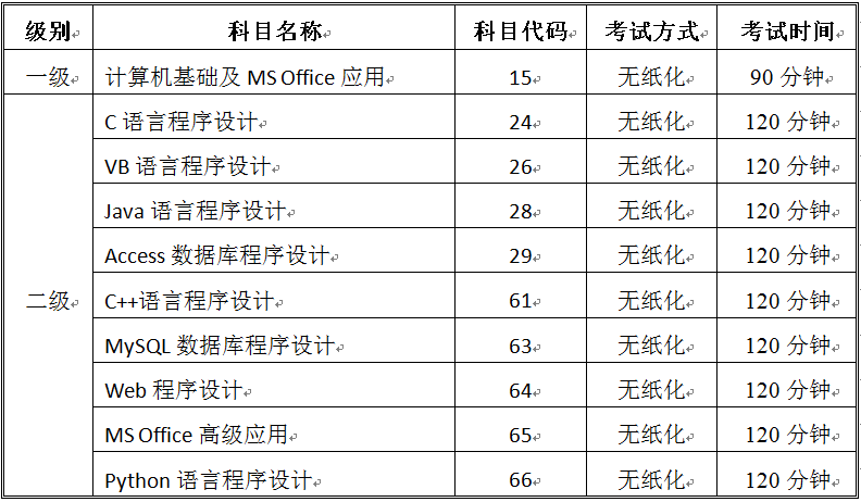 2018年下半年全国计算机等级考试开考科目(星空在线(中国)唯一官方网站考点)