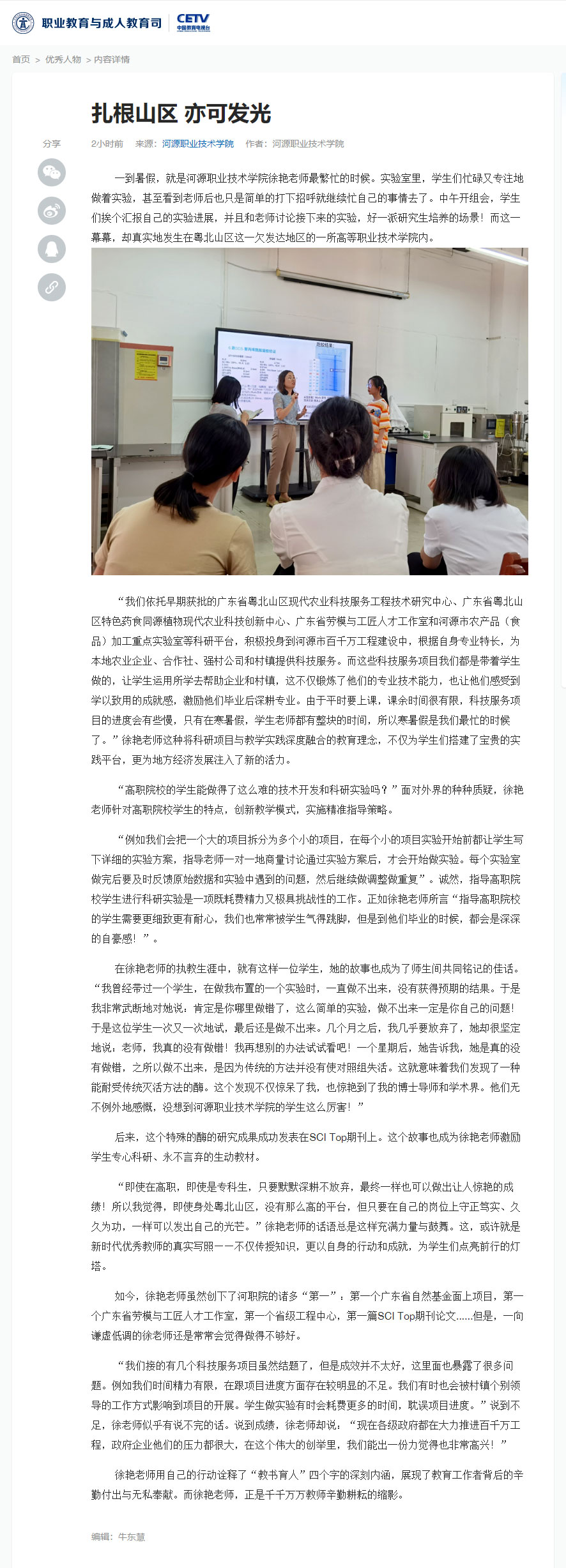 上一篇:中国教育网络电视台职业教育频道报道我校兼职教师、企业导师周捷航优秀事迹案例