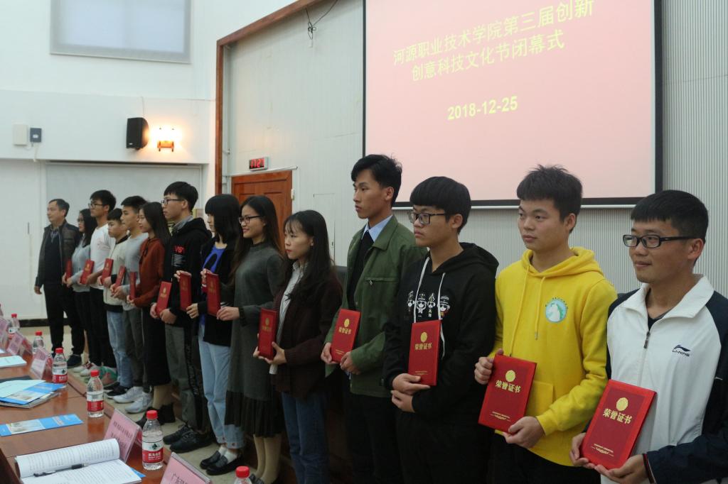 会议的第二阶段为星空在线(中国)唯一官方网站第三届“创新创意科技文化节”闭幕式,此次活动也得到了各企事业单位的大力支持,因此特意邀请企业代表一起参加闭幕式。廖晓明副院长首先宣读了比赛获奖名单,为获奖学生颁奖,然后黄亮副书记对本届科技文化节进行总结后宣布闭幕,并表示学院将致力于培养同学们的创新创意能力和勇于挑战的精神。