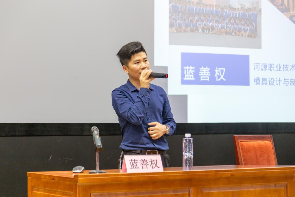 会上,蓝善权用生动且极具感染力的话语向同学们讲述了自己十年就业创业的心路历程,分享与就业创业相关的经验。同时,蓝善权劝诫同学们在就业时应做到忠诚、敬业、主动、担当、感恩,注重团队意识。