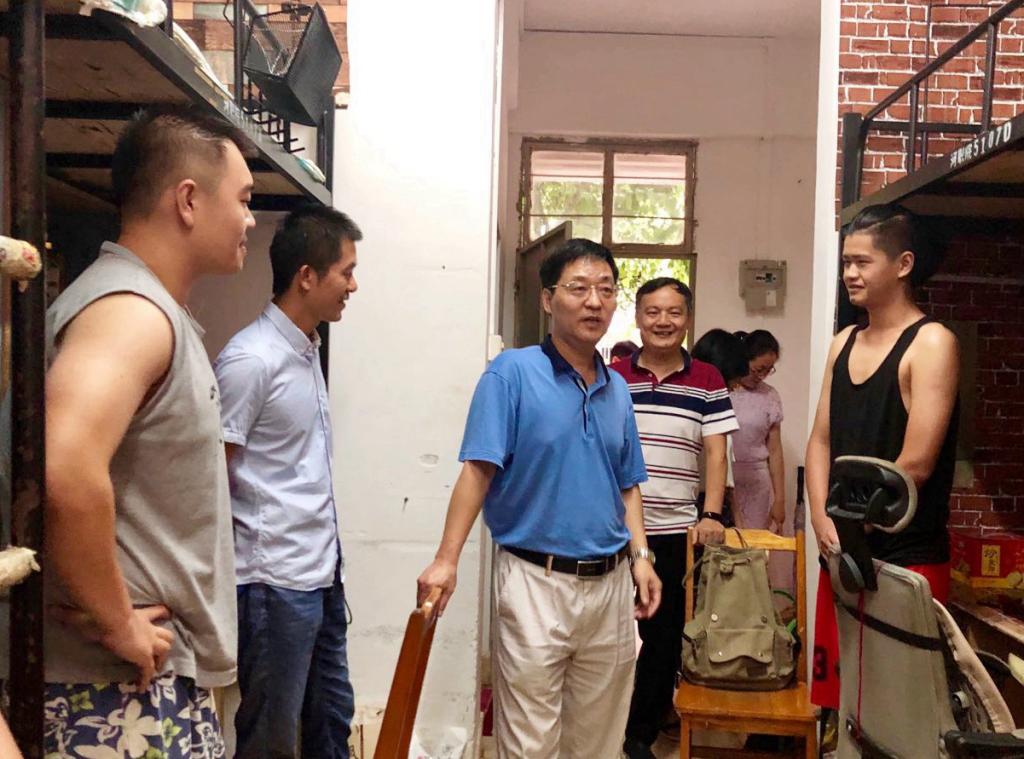 9月5日下午,我校党委副书记叶国英、副校长王小宁在机电学院钟建坤院长等人的陪同下,到机电学院A区男生宿舍走访。