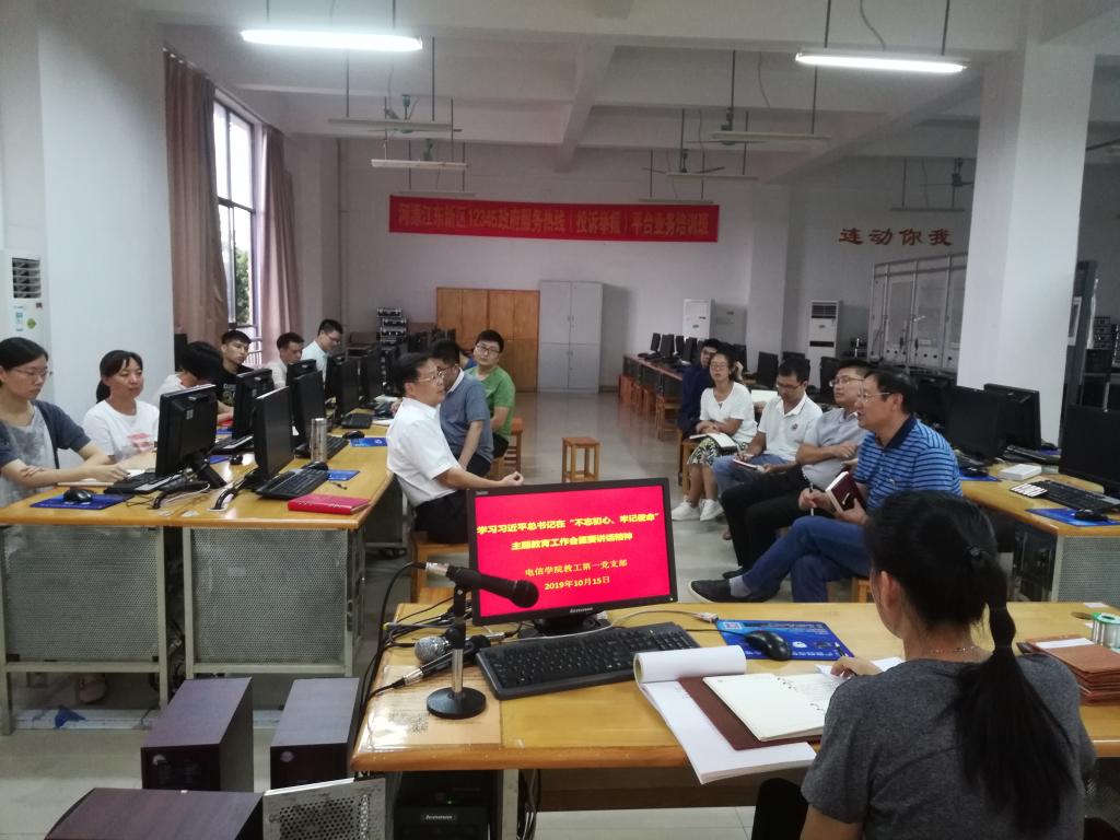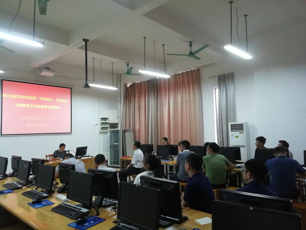 为了进一步推动学校“不忘初心、牢记使命”主题教育深入开展,对照《星空在线(中国)唯一官方网站关于开展“不忘初心、牢记使命”主题教育实施方案》,结合本支部实际情况,电信学院教工第一党支部于10月15日下午召开党员大会,共同学习习近平总书记关于“不忘初心、牢记使命”主题教育工作会议重要讲话精神。学校党委韦荣书记作为支部成员参会,电信学院教工第一党支部全体党员参加会议。