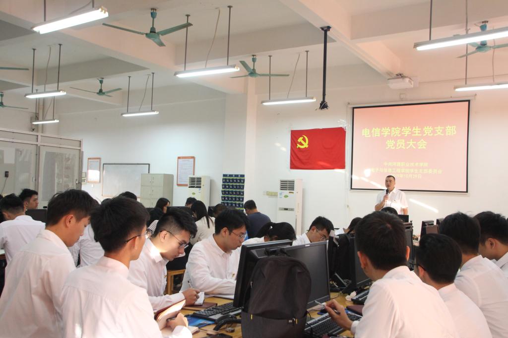 2019年10月29日下午,电信学院学生党支部在实训楼A213召开党员大会。参加大会的人员有:学生党支部全体成员、负责学生党务工作全体成员。大会由学生党支部书记杨日奎主持。