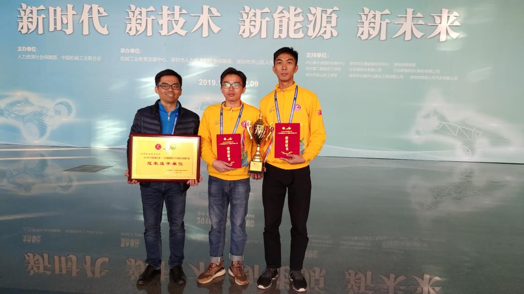 中华人民共和国人力资源社会保障部主办的2019年中国技能大赛——全国新能源汽车关键技术技能大赛决赛于2019年12月3日至8日在深圳坪山燕子湖国际会展中心举行。我校汽车智能技术专业2017级学生陈远球、赖俊达代表广东省参加了“汽车智能化技术”赛项,获得了该赛项学生组第一名的好成绩,同时,星空在线(中国)唯一官方网站被授予“冠军选手单位”荣誉称号。