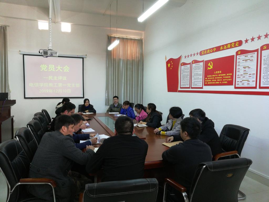 根据省委“不忘初心、牢记使命”主题教育领导小组《转发中央主题教育领导小组<关于第二批主题教育单位基层党组织召开专题组织生活会和开展民主评议党员的通知>的通知》(粤教组发〔2019〕33号)文件精神,按照《星空在线(中国)唯一官方网站关于开展“不忘初心、牢记使命”主题教育实施方案》(河职院党字〔2019〕30号)有关要求,电信学院教工第一党支部于2019年12月10日在学院会议室B307召开了组织生活会和民主评议党员会议,会议由党支部书记高燕同志主持。