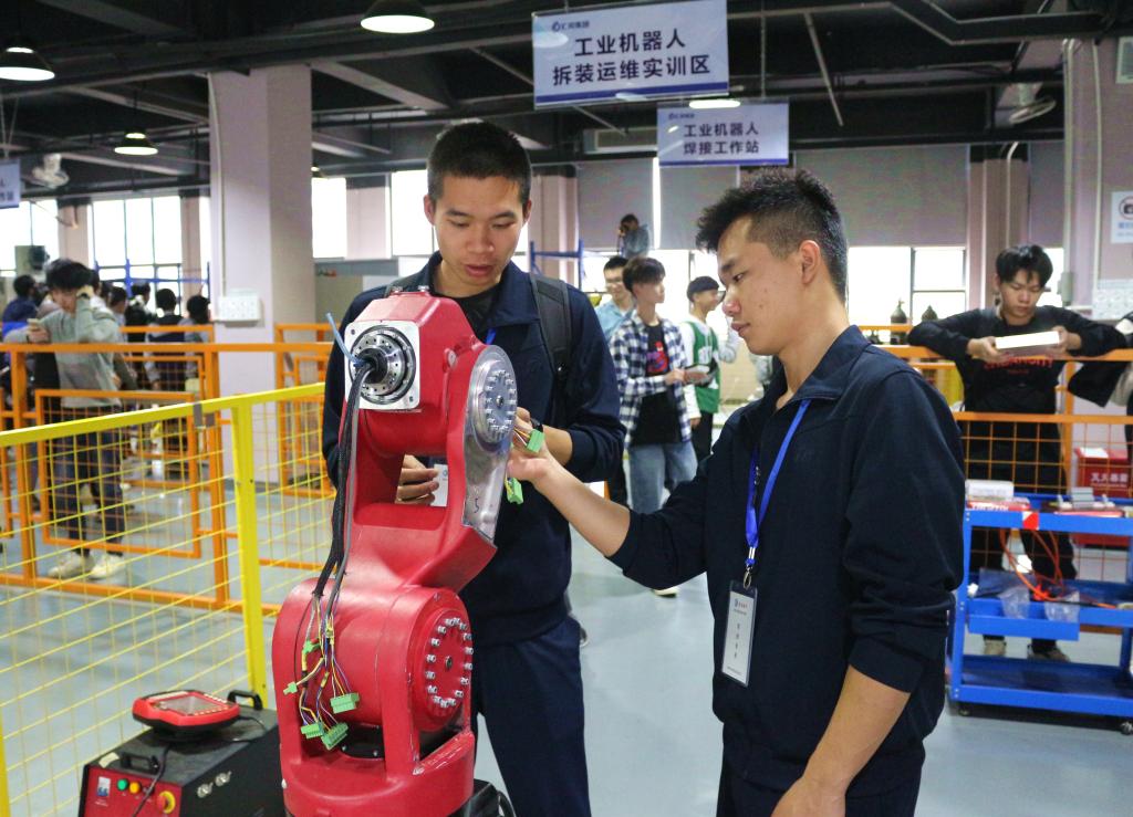 为了让学生更好地了解工业机器人行业领域的发展现状,12月14日和15日,机电学院钟建坤院长率模具设计与制造、数控技术、工业机器人技术、智能控制技术等专业师生及大学生职业素养能力提升高级班全体成员赴东莞汇邦机器人职业培训学院(以下简称“汇邦培训学院”)参观学习。