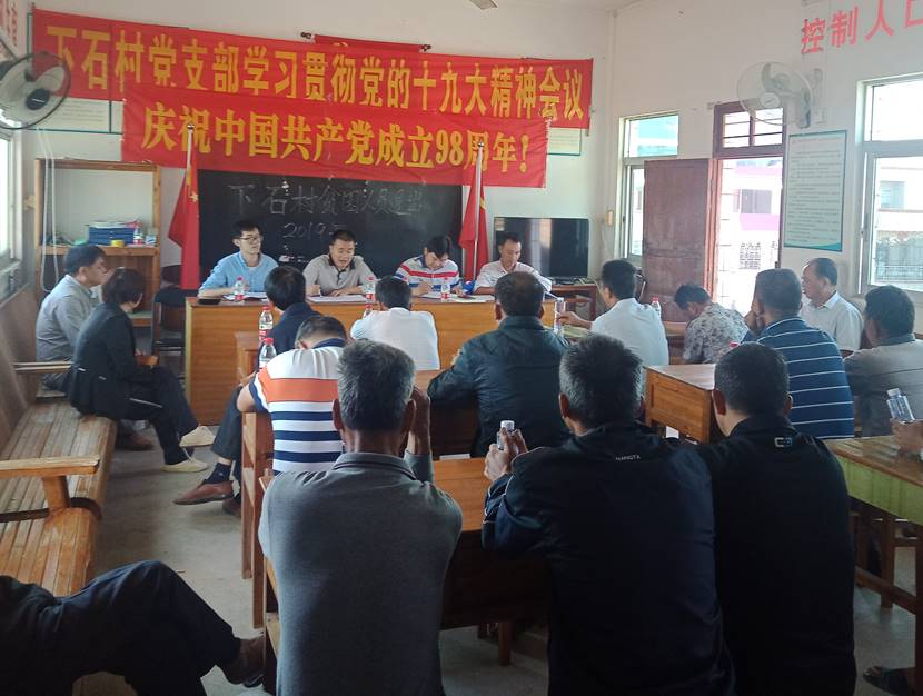下石村党员人数118人,有5个党支部,刘军同志作为驻村第一书记,把开展“不忘初心、牢记使命”主题教育进行制度化和常态化,贯彻落实“三会一课”和党政联席会议,高度重视基层党组织建设,有效发挥党建引领,增强基层党组织的战斗堡垒作用。