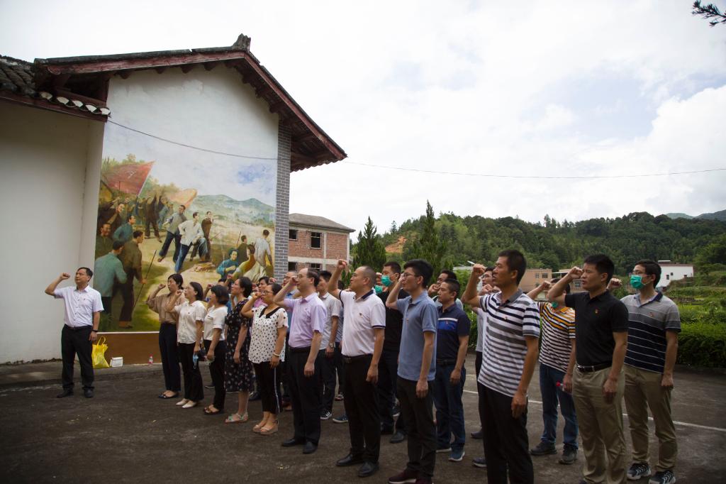 首先,赖小景副校长为党员们上了一堂史料丰富、富有教育意义的党课,主要内容包括:一是东源县康禾镇曲龙村的革命历史,让党员们充分了解了中国共产党由最初的58名党员、7个基层党组织,从小变大、由弱变强,凭借中国共产党的强大生命力,带领中国人民走过艰辛历程,并将继续带领中国人民全面建成小康社会、实现伟大复兴;二是康禾情缘,他介绍了康禾镇的整体情况,并回顾了自己1990年在康禾蹲点调研3个月的点滴,告诉党员们,只要坚信中国共产党的领导、坚持改革开放、坚定“四个自信”,中华民族就一定能取得伟大的成就;三是中共“一大”的前前后后,7月1日成为党的诞辰纪念日的由来,让党员们明白了中国共产党是如何诞生,并历经艰难困苦,走向全国执政。赖小景副校长精彩而让人难忘的党课,让党员们在特殊的日子、特殊的地点、特殊的活动中,有了特殊的回忆。