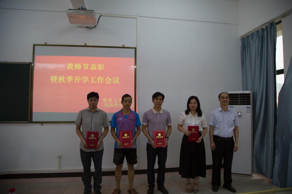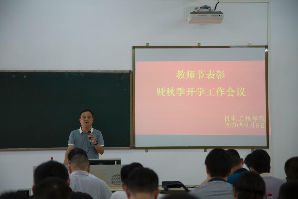 9月9日下午,机电工程学院在实D312召开第36个教师节表彰暨2020年秋季开学工作会议,赖小景副校长及学院全体教职工参加大会,大会由钟建坤院长主持。