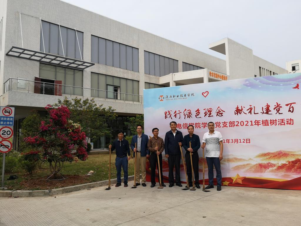春暖花开万物苏,植树添绿正当时。3月12日,电信学院学生党支部组织全体党员、入党积极分子近百人在校园开展以“践行绿色理念 献礼建党百年”为主题的植树造林活动。学校陈德清校长、袁光华副校长、组织人事处黄建华处长、资产后勤处廖远兵处长、信息中心杨文主任、电信学院班子成员及学生党支部全体党员、入党积极分子代表等参加了活动。