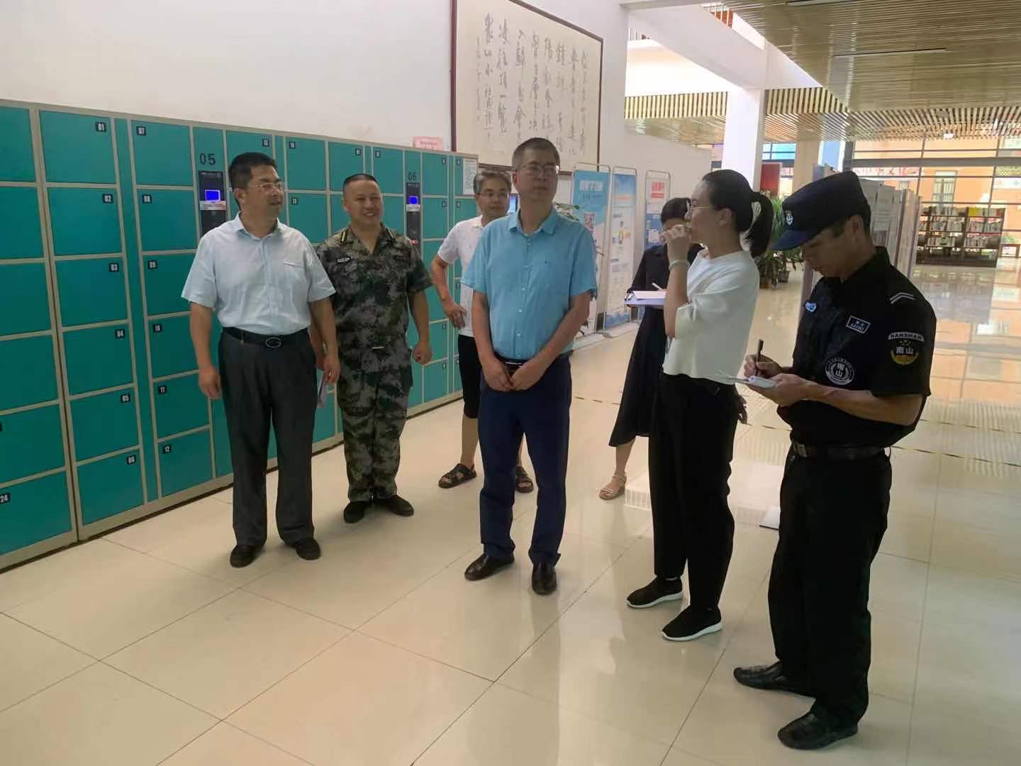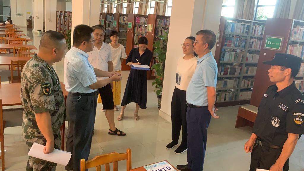 6月7日下午,张国勇副校长在保卫处邓伟昌、图书馆杨海燕等人的陪同下,对图书馆进行安全专项检查。