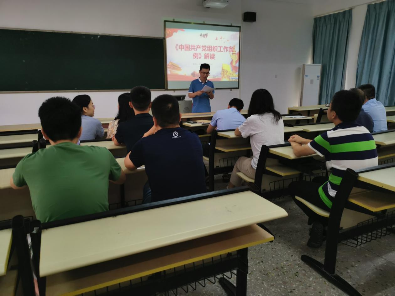 同时,教工第二党支部在实训楼D312也组织了《条例》集中学习。支部书记钟燕辉同志首先做了发言,介绍条例出台的背景,指出《条例》是我们党历史上第一部关于组织工作的统领性、综合性基础主干法规,是做好新时代党的组织工作、加强党的组织建设的基本遵循。在集中学习后,各党员同志进行研讨发言。