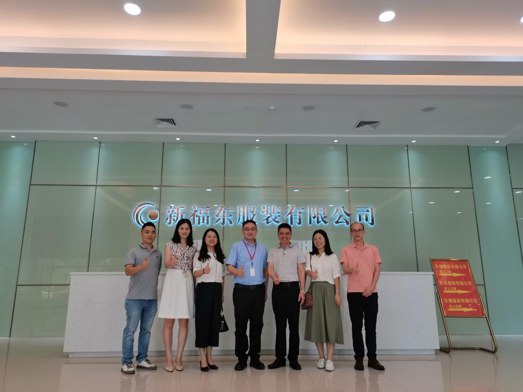 袁光华一行首先在刘厂长的引导下参观了新福东服装有限公司的车间和相关的机械设备,随后在会议室举行了双方座谈。