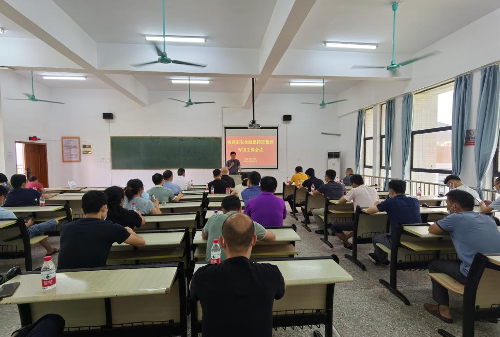 首先,廖晓明副院长通报了学院前期实训室安全隐患排查整治的相关情况,要求各实训室管理员,提高政治站位、树立责任意识,立行立改、安全至上,不讲价钱、不拖后腿,坚决贯彻上级领导的工作要求,切实做好实训室的安全管理工作。