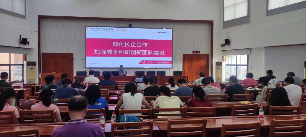 李教授从引言、研发项目、成果展示和人才培养模式四个方面展开精彩报告。首先,李教授以“为什么要进行校企合作?”“校企合作能带来什么?”为切入点,从《国家职业教育改革实施方案》(职教20条)阐述了高职院校要进行校企合作的重要性;然后,李教授结合与雅达电子11年深度的校企合作,从项目联合申报、科研论文发表、专利申报、系统产业化出发,向大家展示了校企合作带来的学术论文奖、科技进步奖等一系列的成果;最后,李教授向大家分享了这11年来始终坚持“深度校企合作为基础,项目为依托,项目成果为支撑”校企合作思路,为河源市培养了一批高层次技能人才,也为学校培养了优秀的高职称教师,为学校高质量发展发挥了自己的能量。