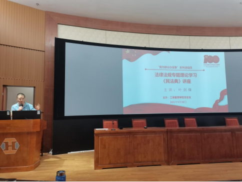 结合今年学院纪律教育学习月的活动安排,为推动党史学习教育走深走心走实,促进法律法规专题理论学习,9月28日下午,工商管理学院党总支举办“我为群众办实事”系列活动第四场——《民法典》专题法治讲座。讲座由叶剑锋老师主讲,学院全体教职员工参加。