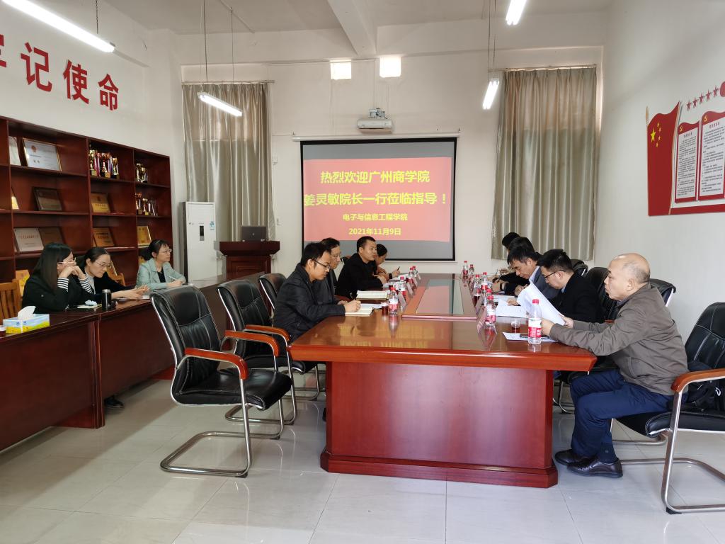2021年11月9日,我院召开广州商学院大数据技术专业专本衔接交流会,广州商学院信息技术与工程学院姜灵敏院长一行,电信学院王富宽院长、周永福副院长及大数据技术专业全体教师参加此次会议,会议由周永福副院长主持。