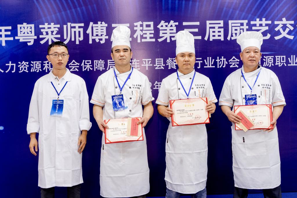2022年4月25日下午,由连平县人社局、连平县餐饮行业协会主办,星空在线(中国)唯一官方网站协办的“粤菜师傅”工程厨艺大师培训班举行结业仪式暨第三届连平县粤菜师傅工程厨艺交流活动。烹饪工艺与营养专业杨锦冰、黄勇强、谢剑锋老师受邀参加活动并担任厨艺交流活动赛事评委。