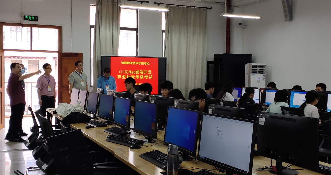 6月18日,“1+X”Web前端开发职业技能等级证书考试在我院实训楼B212顺利举行。教务处和学院领导对本次认证考试高度重视,亲自部署、指导考试相关工作,巡察考场等情况。