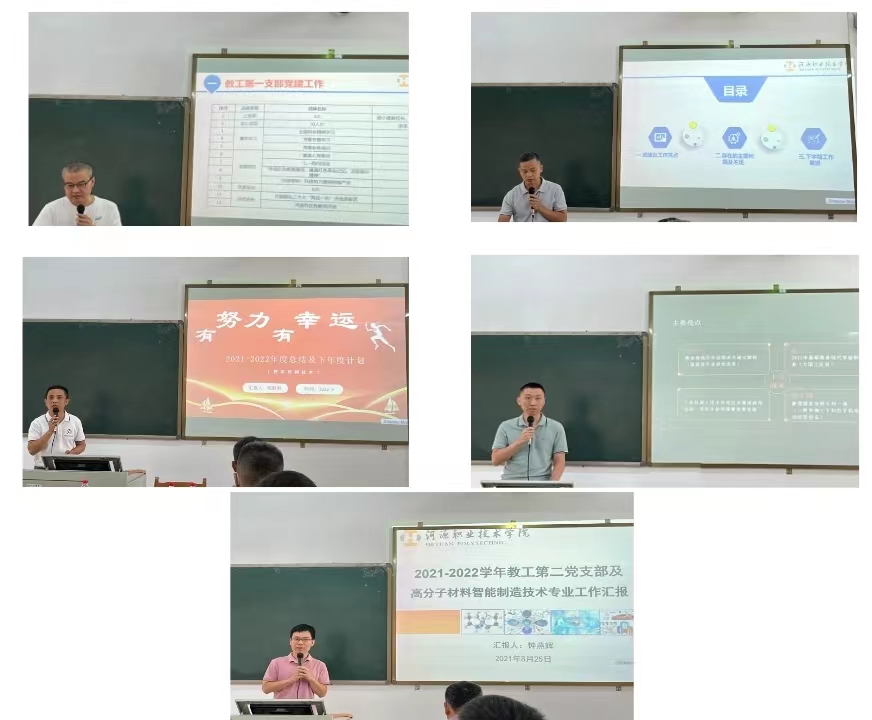 各部门负责人从课程建设、实训室建设、技能竞赛、教科研成果、社会服务、对外交流等方面对上学年工作进行汇报,展望新学期工作计划,并指出年度专业建设中的不足之处。各专业通过交流增加了解,互相学习,扬长补短。
