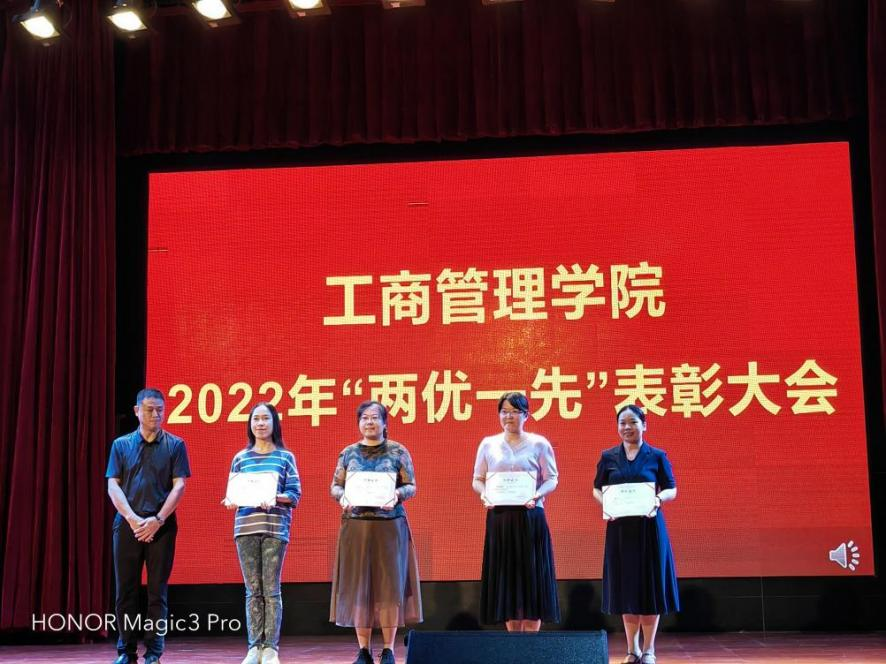 邹东平宣读了学校的表彰决定。学院领导班子成员分别为获表彰的学校“优秀共产党员”和“优秀党务工作者”颁发荣誉证书并合影留念。