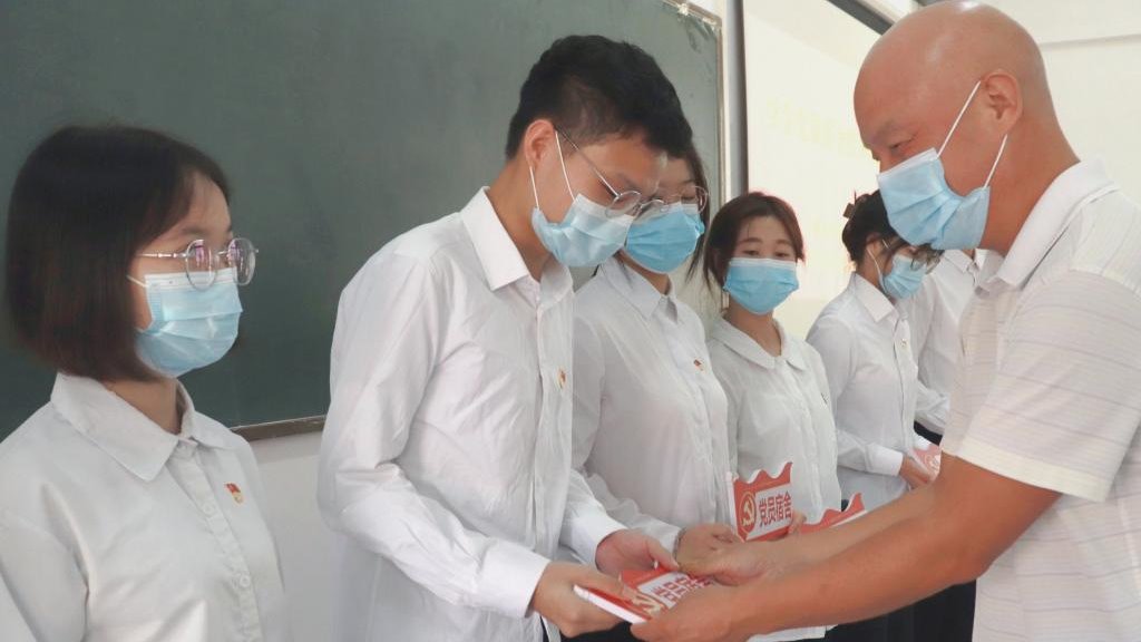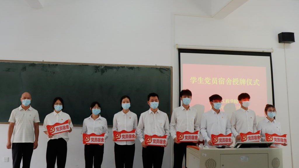 随后,叶国英副书记为学生党员颁发党员宿舍牌匾。学生党员宿舍授牌仪式结束后,教职工们和学生党员们一起观看了警示教育片。