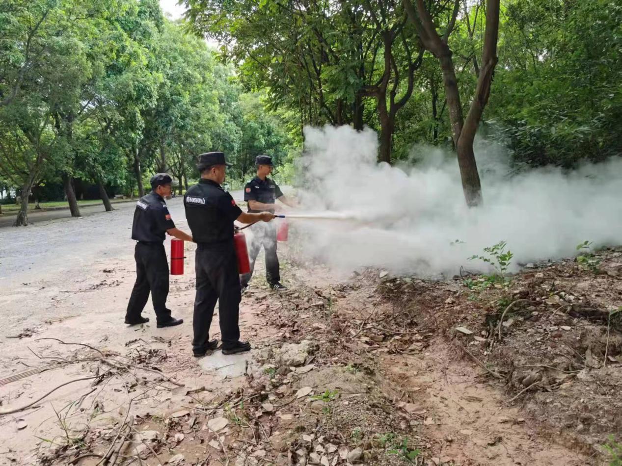 保卫处组织师生员工进行消防知识培训,安保公司专职消防员讲解了消防水带的使用、灭火器的使用,发生火灾时的应急预案处置流程。专职消防员并带领师生员工来到学校空地,进行灭火实操演练,师生员工在专业指导下进行灭火器实操。