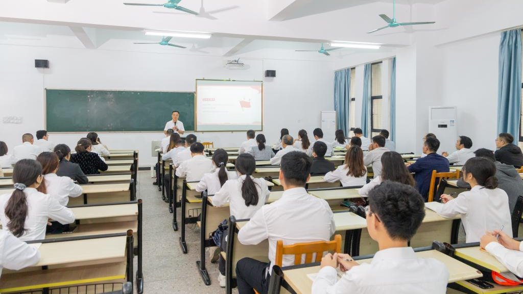 钟建坤同志首先介绍了党的二十大的主题和重大意义,接着从过去五年的工作和新时代十年的伟大变革、开辟马克思主义中国化时代化新境界、新时代新征程中国共产党的使命任务等十五方面解读大会精神,结合学校工作实际对“实施科教兴国战略,强化现代化建设人才支撑”等进行重点解读,并分享领学了党的二十大报告的金句。钟建坤同志强调,教师党员必须全面贯彻党的教育方针,落实立德树人根本任务,培养德智体美劳全面发展的社会主义建设者和接班人,为社会经济发展输送更多高素质技术技能人才;师生党员必须全面学习、领会、贯彻习近平新时代中国特色社会主义思想,不断增强责任感、使命感,踔厉奋发、勇毅前行,以实际行动做心中有信仰、肩上有担当、脚下有力量的中国共产党党员。