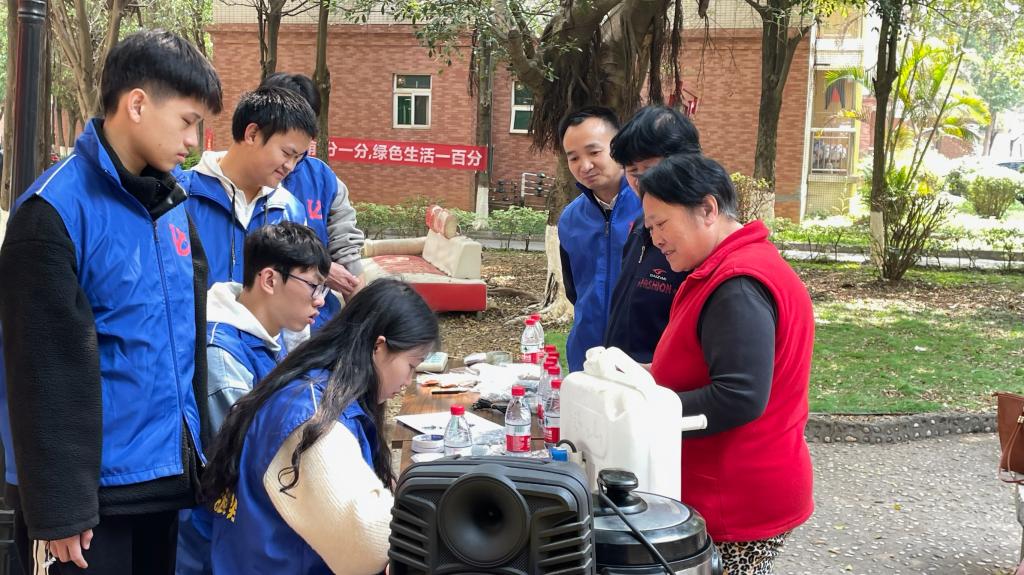参与此次活动的学子们早早来到现场,布置好场地,做好准备工作。活动开始不久便有邻居街坊过来询问,现场气氛非常融洽。学子们帮助街坊们维修电磁炉、电饭煲、吹风筒等电器。如果有的电器较为大型或不便拿出,学子们也能上门服务,帮忙维修冰箱,更换灯泡。他们在自己的专业领域认真努力,挥洒着热情。