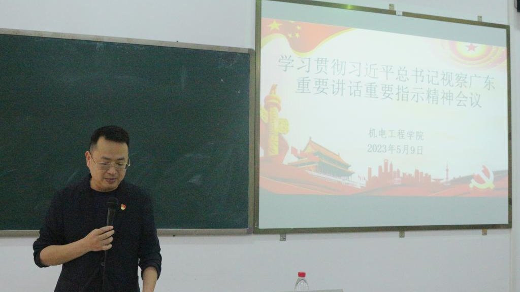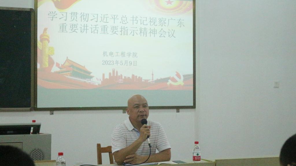 5月9日下午,机电工程学院在实训楼D312召开学习贯彻习近平总书记视察广东重要讲话重要指示精神会议,学校党委副书记叶国英、学院全体教职工参加活动,活动由钟建坤院长主持。