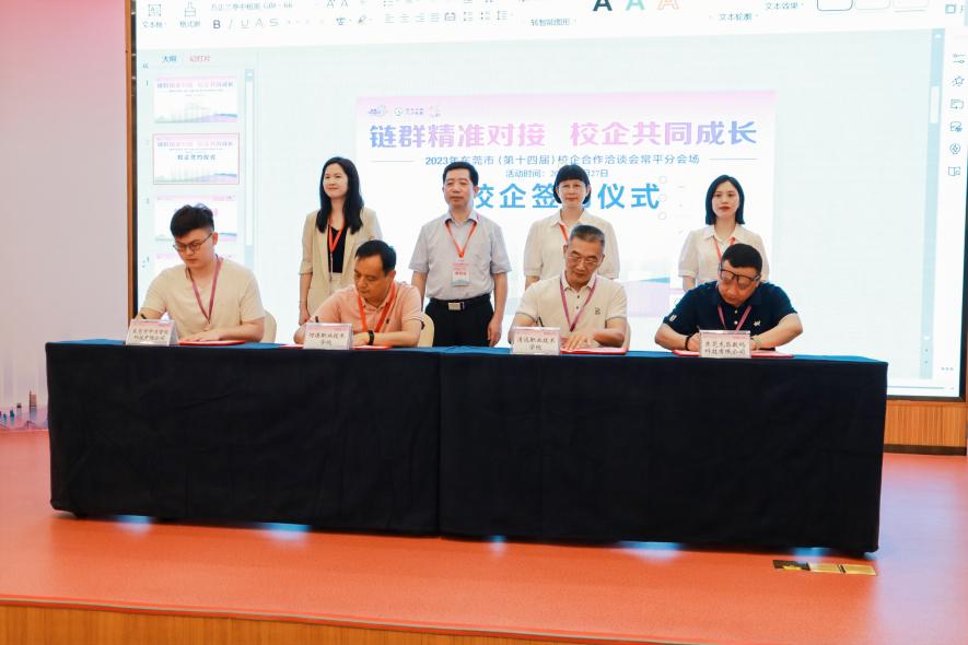 本次洽谈会以“链群精准对接,校企共同成长。”为主题,机电工程学院与参会的高等职业院校及常平50多家特色、重点企业进行了友好洽谈。根据现场洽谈,初步形成合作意向,并签订校企合作协议。