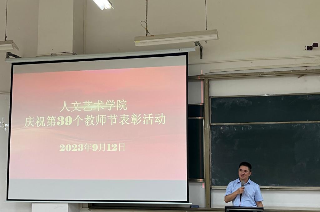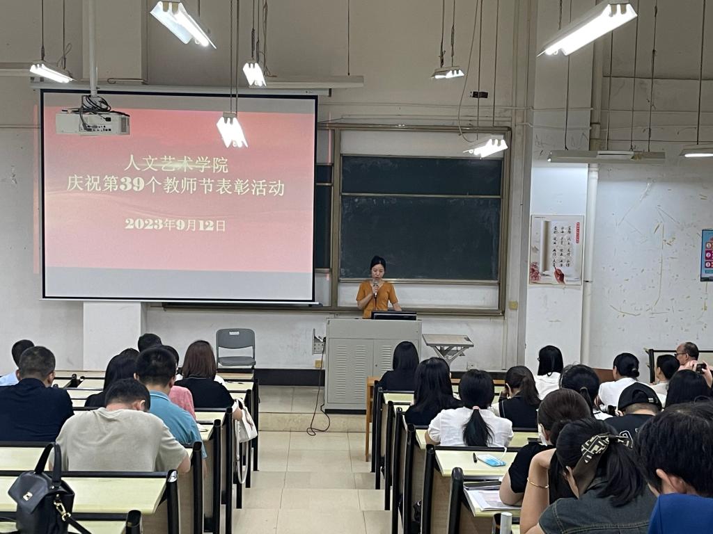 2023年9月12日,人文艺术学院在教学楼D208举行教师节表彰活动,学校副校长袁光华、学院院长罗春娜以及全体教职员工参加了此次活动。
