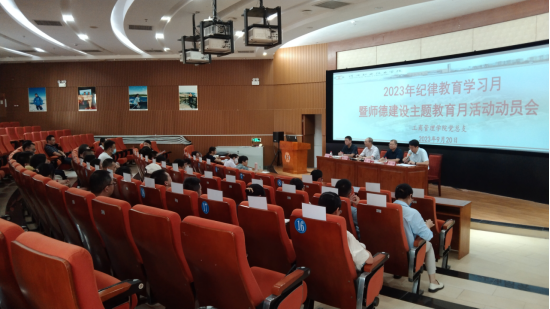 按照学校2023年纪律教育学习月活动工作部署,9月20日,工商管理学院党总支在实训三期3D导游模拟实训室召开2023年纪律教育学习月暨师德建设主题教育月活动动员会。赖小景副校长,学院全体教职工参加会议。