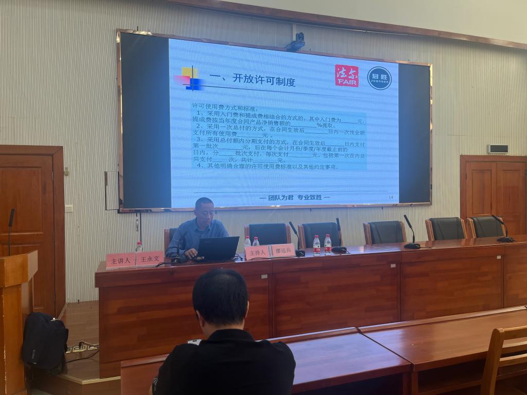 会上,王永文专家还从专利及其制度设计的初心和目的,专利侵权纠纷处理程序,专利侵权判定等知识进行了详细的讲解,并围绕《中华人民共和国专利法》对于侵犯专利权的相关法律法规、专利储备、侵权分析等内容,重点分析了专利侵权预警的基本流程,建立知识产权防火墙,助力学校高质量创新创造。