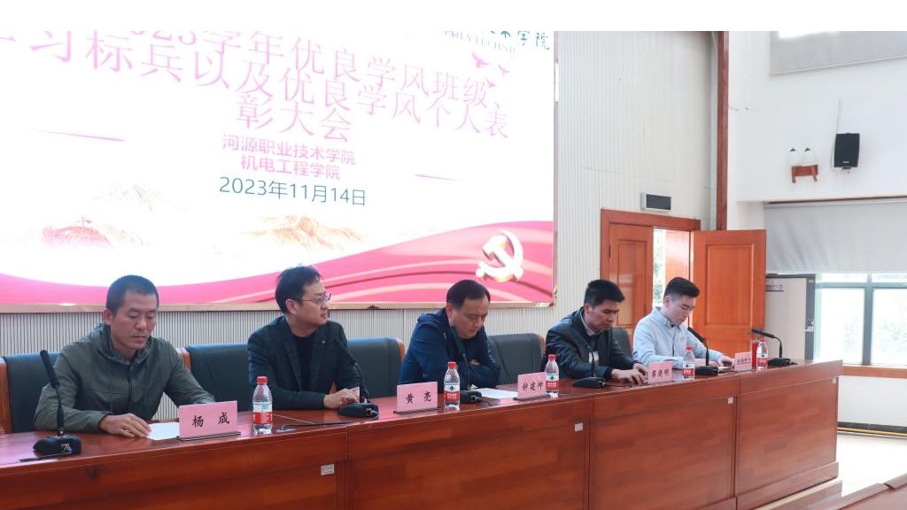 首先,杨成宣读了机电工程学院2022-2023学年优良学风班级、学习标兵、优良学风个人的表彰决定。
