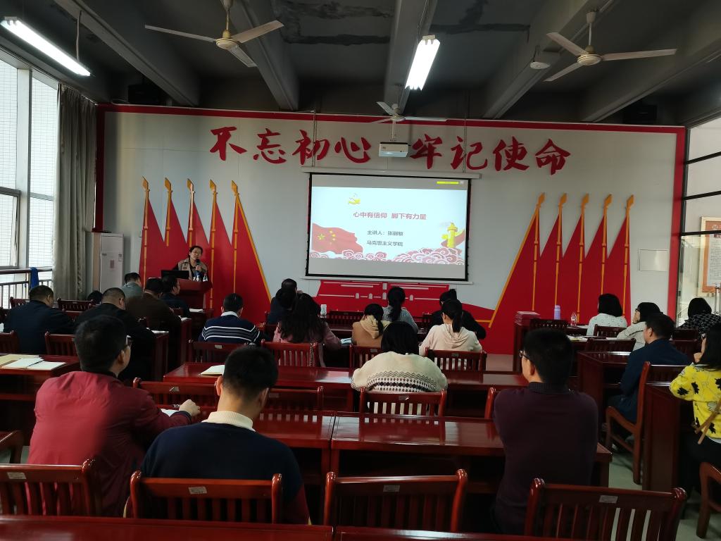此次主题教育的题目为“心中有信仰、脚下有力量”。张教授从三方面开展本次主题教育,分别是:信仰是什么?信仰的意义?如何坚定信仰?通过张教授生动的讲课,让各位党员教师深刻领悟到信仰是人安身立命的根本,信仰是经受考验的精神支柱,信仰是夺取胜利的动力源泉。作为一名中国共产党员,党员干部信仰坚定,就能自觉挺起中国共产党人的精神脊梁,风雨无阻,坚毅前行,反之就会“缺钙”,就会出现问题。