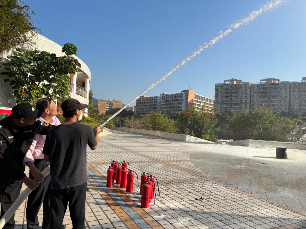 活动中,学校安保工作人员介绍了灭火器的使用方法,结合现场演示,讲解了灭火器提、摇、拔、压的要领。在安保工作人员的指导下,学院全体老师及学生代表轮流进行实战灭火演练。随后,全体人员学习了消防水带使用方法,在安保工作人员指导下,顺利完成了消防水带使用演练。