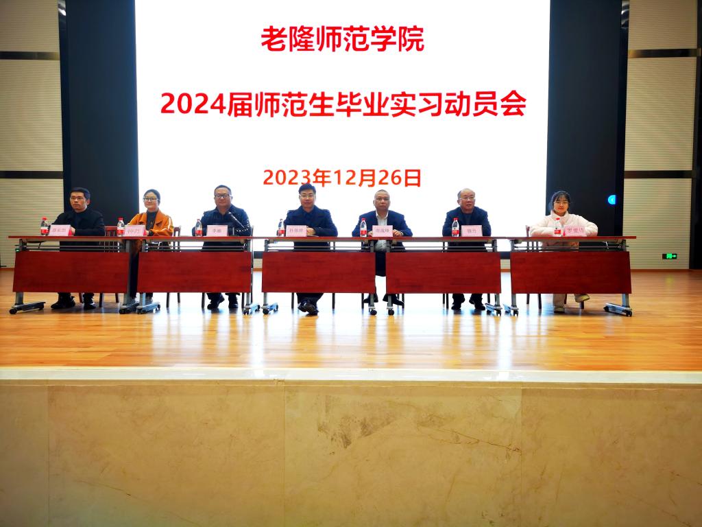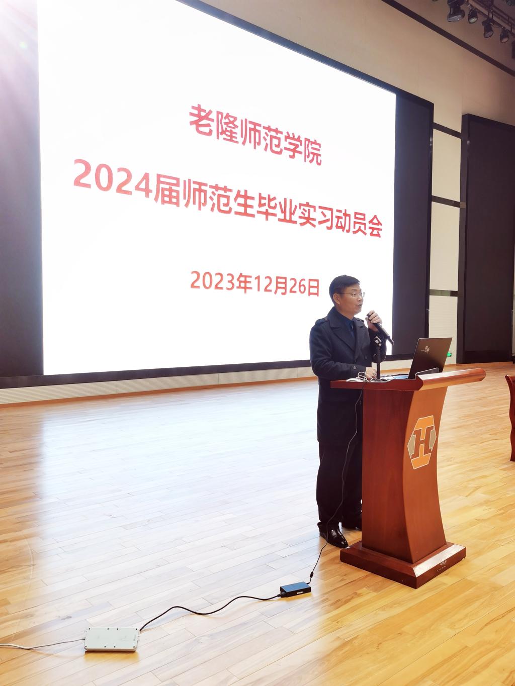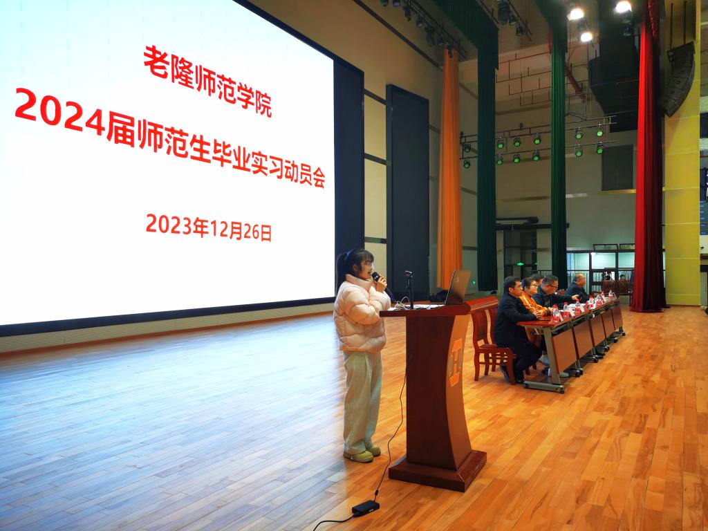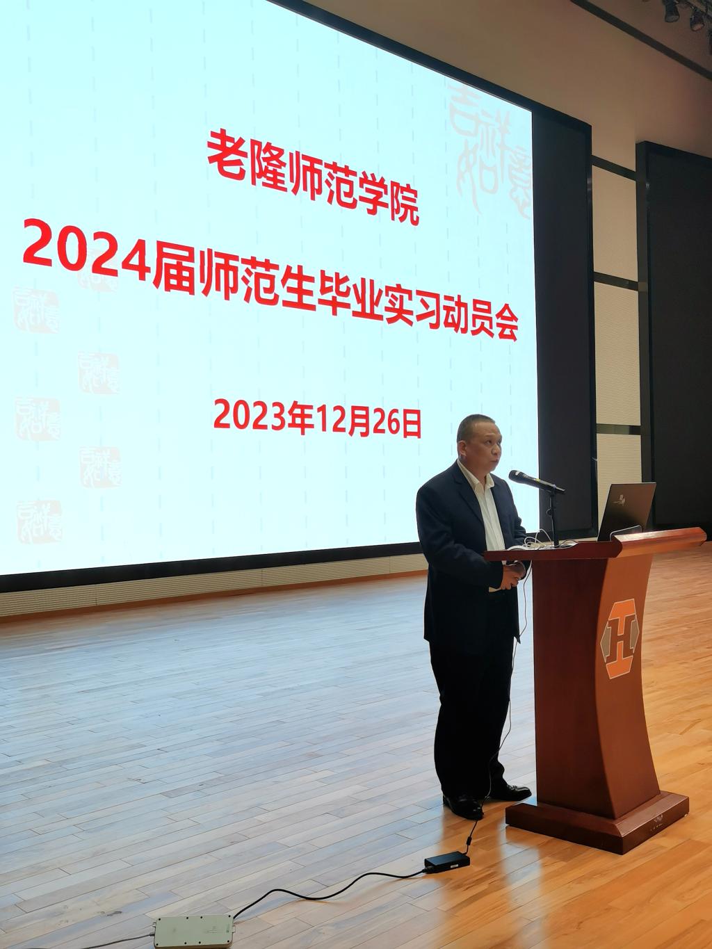 12月27日19:30,老隆师范学院在学校体育馆召开2024届师范生毕业实习动员会。会议由副院长李雄主持。学院班子成员、全体指导老师及2024届毕业生参加了此次动员大会。